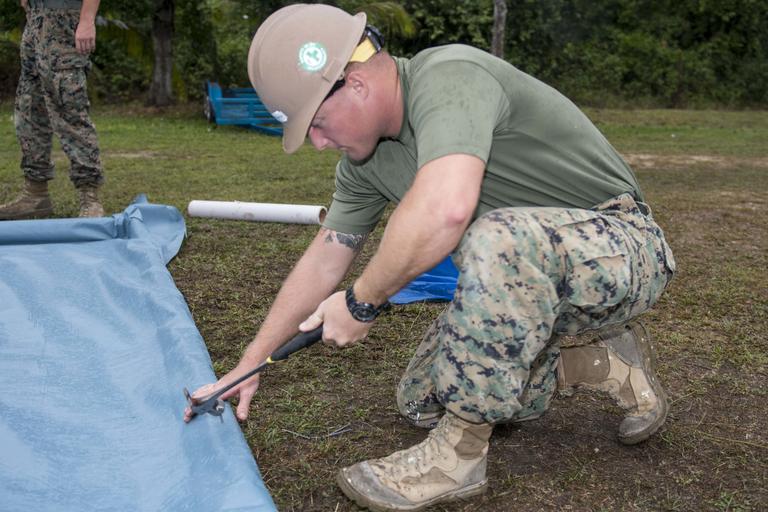 Keywords: Pacific Partnership 2016 160806-N-CV785-039.jpg en 160806-N-CV785-039 KUANTAN Malaysia Aug 6 2016 Marine Sgt Zachary Weatherwax attached to 1st Combat Engineer Battalion constructs a frame to protect wet concrete at Sekolah Kebangsaan Wira from seasonal rains U S Navy Seabees worked alongside Malaysian Royal Engineering Regiment soldiers to construct two large play courts for the school children as part of a Pacific Partnership 2016 engineering capability project This is the first time Pacific Partnership has visited Malaysia During the mission stop partner nations are working side-by-side with local military and civilian organizations in a search and rescue exercise civil engineering projects community relation events and subject matter expert exchanges University of California-San Diego Predental Society photo by Ted Wendel/Released <br>Unit Defense Imagery Management Operations Center 2016-08-05 michael d cole https //www dvidshub net/image/2803786/pacific-partnership-2016 160806-N-CV785-039 2016-08-19 08 02 KUANTAN MY PD-USGov-Military-Navy Pacific Partnership 2016 United States Navy Seabees Images from DoD uploaded by Fæ |