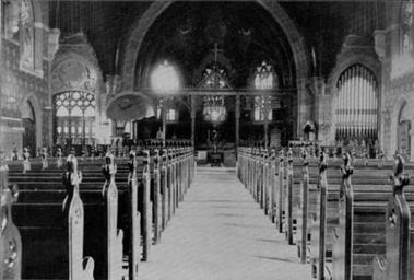 Keywords: Packer Memorial Church interior view 1896.jpg Interior view of Packer Memorial Church of Lehigh University which was erected by Mrs Mary Packer Cummings in memory of her family This magnificent Gothic temple is constructed of sandstone and in elegance of finish as well as in massiveness is the crown of the collection of handsome buildings in the University park The total length of the church is 168 feet inside and the transepts measure 84 feet across The front is adorned with a bold spire 180 feet high and the carved stone work of the portal together with the projecting baptistry give a rich variety to the lines It will seat 900 persons comfortably and is was used not only for divine service but also for the Commencement exercises The interior is handsomely decorated and the series of stained glass windows illustrate a large number of Scripture incidents The chancel contains a fine organ Edmund M Hyde The Lehigh University a Historical Sketch 1896 http //www lehigh edu/library/speccoll/hyde pdf The Lehigh University a Historical Sketch by Edmund M Hyde 1896 < 1896 author PD-old-100 Packer Memorial Church Black and white photographs of buildings |