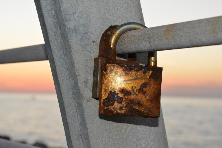 Keywords: padlock love rust railing iron in love promises sea couple boyfriends padlocks