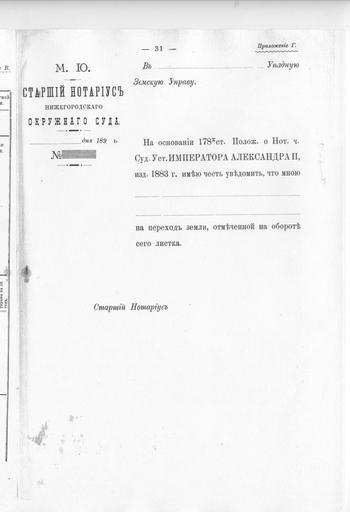 Keywords: Page 31.jpg ru ста ший нота иус нижего одского ок ужного суда Бланк на п иоб етение земельной собственности С 31 П иложение к докладу ижего одской губе нской оценочной комиссии об общем аспо ядке оценочных абот в губе нии 1894 author PD-old Report of Nizhny Novgorod province assessing commission about general regulations of assessing works in province Notary documents of Russia