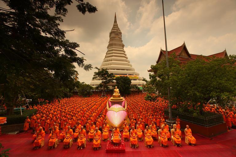 Keywords: pagoda supreme patriarch buddhists patriarch priests monk orange robes thailand asia thai religion belief buddhism ceremony tradition festival gathering meeting group people many temple praying meditation meditating