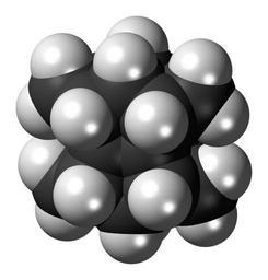 Keywords: Pagodane-3D-spacefill.png Ball-and-stick model of the pagodane molecule a hydrocarbon named for its resemblence to a pagoda Colour code 505050 Carbon C black<br> F0F0F0 Hydrogen H white<br> 2011-01-25 own DS Visualizer Jynto talk Ball-and-stick version Skeletal stick version cc-zero Pagodane Images by Jynto |