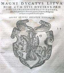 Keywords: Pahonia. Пагоня (1611).jpg «Пагоня» «Pahonia» Sarmatiae Europeae descriptio quae Regnum Poloniae Lituaniam Samogitiam Russiam Masoviam Prussiam Pomeraniam complectitur author 1611 PD-old-100 Historical images of Pahonia