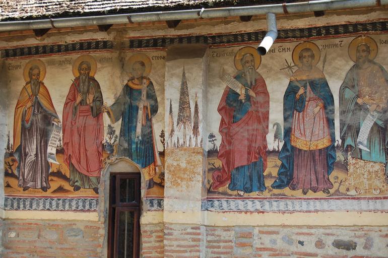 Keywords: Painted church exterior.JPG en Painted exterior of Olari the thatched Orthodox church in Curtea de Arges own Lawson Speedway 2007 Curtea de Argeș Romanian Orthodox churches in Argeș County Orthodox murals in Romania Murals and icons on the exterior of churches |