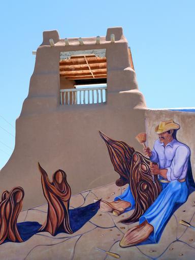 Keywords: painted house wall taos city new mexico usa