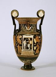 MAKE A MEME View Large Image Painter of Copenhagen 4223 - Red-Figure Volute Krater - Walters 482759 - Side A.jpg The central scene depicts the deceased as a warrior in a naiskos small temple with a young servant by his side Male and female figures on either side of the ...