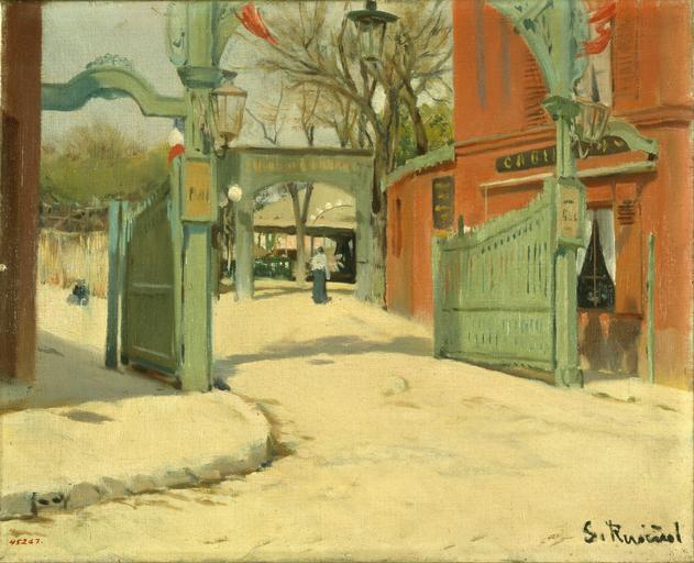 Keywords: painting art artistic artistry oil on canvas outside entrance buildings landscape architecture urban woman summer spring