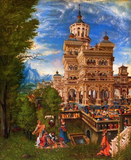 Keywords: painting picture art oil middle ages building history details old town architecture piece of art tower style landscape structure