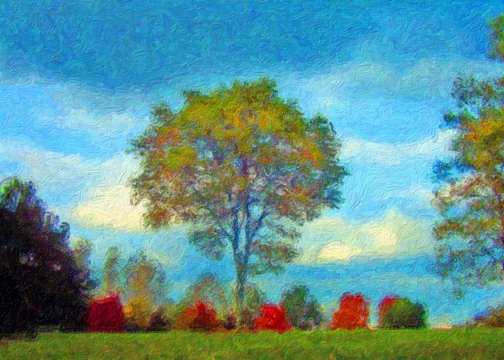 Keywords: painting trees autumn leaves fall flora season foliage nature