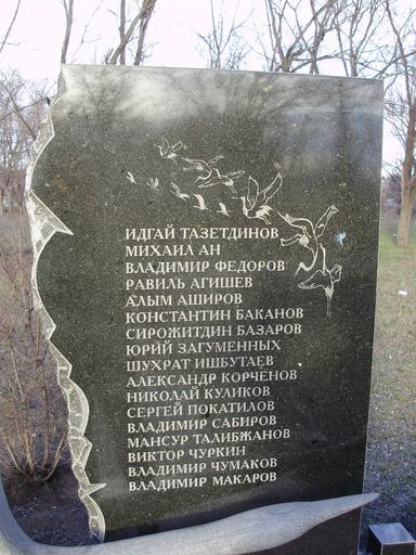 | Keywords: Pakhtakor monument (4).JPG ru Ф агмент памятника футбольной команде «Пахтако » погибшей в авиакатаст офе 11 августа 1979 года пгт Ку иловка Пет иковский айон Днеп опет овская область en Detail of the monument to footbal team «Pakhtakor» perished in mid-air collision on 11 August 1979 Urban-type settlement Kurilovka Petrykivka Raion Dnipropetrovsk Oblast 2014-03-17 own Vasyatka1 48 572722 34 642011 Pakhtakor monument | ||||