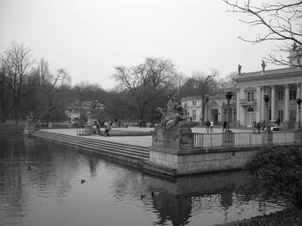 | Keywords: Palac na wodzie-tyl b&w.jpg Widok od przodu Pałacu na Wodzie w warszawskim Parku Łazienkowskim fotografia czarno-biała Front view of Palace on Water in Lazienki Park in Warsaw black-and-white photograph Own 2007-03-11 Dariusz Szczepanek Utsutsu Black and white photographs of Warsaw Southern facade of the Palace on the Water |