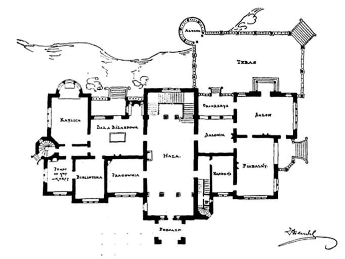 | Keywords: Palace in Skolyszyn (01).png uk Палац у Сколишині Польща П оект Зигмунта Генделя 1862 1929 http //bcpw bg pw edu pl/dlibra/doccontent id 937 Architekt 1902 10 Zygmunt Hendel 1862 1929 before 1902 PD-old PD-Poland Zygmunt Hendel Skołyszyn Floor plans of Poland |