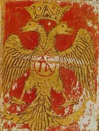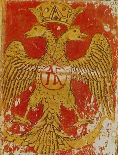 | Keywords: Palaeologoi eagle.jpg Device of the Emperor John VIII Palaiologos featuring the Byzantine double-headed eagle and the sympilema the family cypher of the Palaiologos dynasty Church mural century 16 Author PD-old <gallery>Image Palaeologoi eagle XV c Byzantine miniature jpg Image Palaiologos-Dynasty-Eagle svg Image CoA of Palaiologos Dynasty svg</gallery> File Byzantine Eagle svg File Device of the Palaiologos Dynasty svg Crowned double-headed eagles Byzantine Empire Emblems of the Palaiologos dynasty Family Emblems |