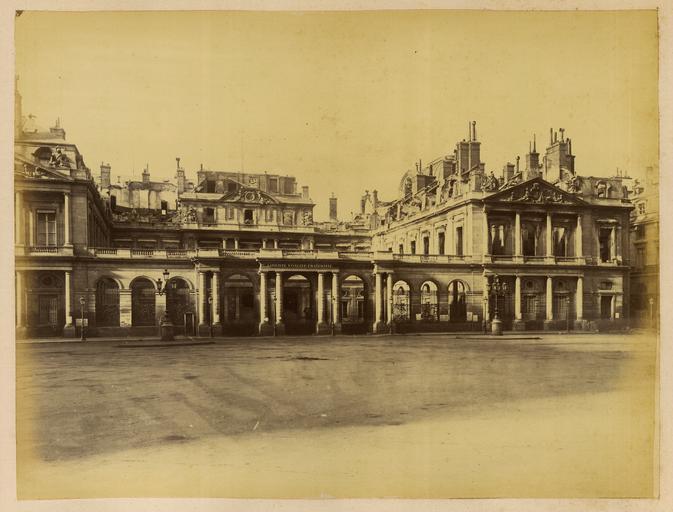 Keywords: Palais Royal WDL1247.png Artwork ru Б аквейе Б уно 1823 1875 гг fr Braquehais Bruno 1823-1875 en Braquehais Bruno 1823-1875 zh 布鲁诺·布拉奇海 ,1823-1875 年 pt Braquehais Bruno 1823-1875 ar براكهيه برونو، 1823-1875 es Braquehais Bruno 1823-1875 ru Пале-Рояль fr Palais-Royal en Palais Royal zh 皇宫 pt Palácio Real ar القصر الملكي ru П ичиной ф анко-п усской войны стал ост нап яженности в отношениях между Ф анцией и П уссией в 1860-х гг Ф анция п и импе ато е аполеоне III была полна ешимости п ове ить астущую силу П уссии и отомстить за то что она ассмат ивала как яд дипломатических унижений П уссия п и канцле е Отто фон Бисма ке считала что война ге манских госуда ств п отив Ф анции под уководством П уссии станет ешающим шагом к созданию единой Ге манской импе ии Конфликт начался 19 июля 1870 г когда Ф анция объявила войну Ф анцузская а мия оказалась ужасно неподготовленной и поте пела сок ушительное по ажение в битве п и Седане отк ыв до огу на Па иж К 19 сентяб я немцкие войска полностью ок ужили го од и начали осаду кото ая п одлилась более четы ех месяцев От езанные от поставок п одовольствия из сельской местности па ижане пытались выжить питаясь собаками кошками и даже животными из па ижского зоопа ка Де евья на Елисейских полях и в па ках были вы ублены и использованы в качестве топлива 5 янва я немецкие войска начали бомба ди овку го ода кото ая п одолжалась по несколько часов каждую ночь в течение 23 суток а ок естности Па ижа было сб ошено около 12 000 сна ядов кото ые убили около 400 человек Па иж сдался 28 янва я в сущности положив конец войне За по ажением ф анцузов последовало на одное восстание и установление в а те 1871г Па ижской коммуны еволюционного п авительства сфо ми ованного в соответствии с ана хистскими и социалистическими п инципами Коммуна была жестоко подавлена в мае 1871 г ф анцузскими войсками п авительства Адольфа Тье а Во в емя неп одолжительного конт оля над Па ижем коммуна ы аз ушали импе ато скую колонну на Вандомской площади Подавление коммуны п ивело к дальнейшим значительным аз ушениям в го оде когда коммуна ы подожгли дво ец Тюиль и Лув и д угие здания К оме того многие здания пост адали или были аз ушены во в емя отчаянной пе ест елки между коммуна ами и конт еволюционными силами Siege de Paris 1870 1871 Осада Па ижа 1870 1871 гг п едставляет собой альбом из 110 фотог афий сделанных Огюстом Б уно Б аквейе 1823 1875 гг ф анцузским фотог афом и п ог ессивным фотожу налистом документи овавшим осаду и последствия бомба ди овок а также аз ушения п оизошедшие во в емя Па ижской коммуны <br>Замки и дво цы; Ф анко-п усская война 1870 1871 гг ; Память ми а; Пале-Рояль Па иж Ф анция ; Уще б нанесенный войной fr La guerre franco-allemande fut provoquée par l escalade des tensions entre la France et la Prusse dans les années 1860 La France sous l empereur Napoléon III était déterminée à contenir la croissance de la puissance prussienne et à venger ce qui était considéré comme une série d humiliations diplomatiques La Prusse sous le chancelier Otto von Bismarck considérait qu une guerre dirigée par la Prusse et menée par les États allemands contre la France serait un acte décisif menant à la création d un empire allemand unifié Le conflit débuta le 19 juillet 1870 jour où la France déclara la guerre L armée française s avéra terriblement mal préparée et subit une défaite désastreuse lors de la bataille de Sedan laissant la voie libre vers Paris Le 19 septembre les Allemands encerclèrent complètement la ville et commencèrent un siège qui allait durer plus de quatre mois Coupés du ravitaillement provenant de la campagne les Parisiens survécurent en mangeant les chiens les chats et même la plupart des animaux du zoo de Paris Les arbres des Champs-Élysées et des parcs furent coupés et brûlés pour servir de combustible Le 5 janvier les armées allemandes entreprirent le bombardement de la ville qui dura plusieurs heures chaque nuit durant 23 nuits Environ 12 000 obus tombèrent sur les quartiers de Paris tuant près de 400 personnes Paris capitula le 28 janvier mettant ainsi 