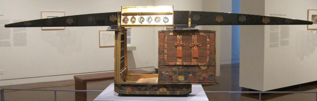 Keywords: Palanquin (kago) from Japan, 19th century, Honolulu Museum of Art.JPG en Palanquin kago from Japan 19th century wood lacquer pigments bamboo silk brocade and metal Honolulu Museum of Art own Hiart photo 2012 Kago Japanese litter Art of Japan in the Honolulu Museum of Art Lacquerware of Japan in the Honolulu Museum of Art Cc-zero |