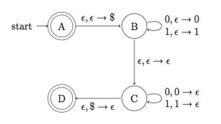 Keywords: Palindrom pushdown automaton.png graph en State diagram of a PDA that recognizes <math>\ ww R \mid \ 0 1\ \ </math> he אוטומט מחסנית זיהוי פ ינדרומי באורך זוגי self gran 2011-01-18 Cc-zero Pushdown automata