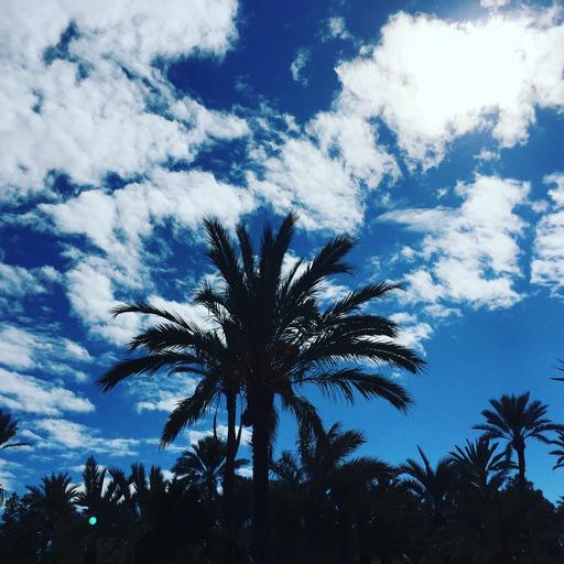 Keywords: palm black sky blue clouds tree silhouette