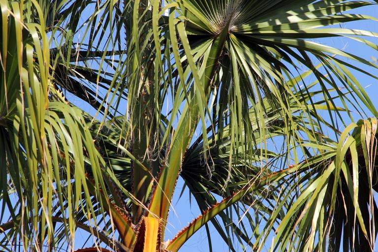 Keywords: palm trees palm leaves nature green tree holiday coconut plant leaves hot summer landscapes south