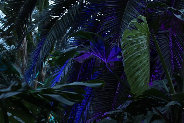 Keywords: palm trees winter lights palm garden light installation light purple green