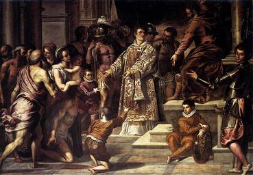| Keywords: Palma il Giovane - St Lawrence Giving the Wealth to the Poor - WGA16902.jpg  between 1581 1582 Oil on canvas size cm 284 382 Institution San Giacomo dall'Orio Venice object history credit line accession number WGA link 16902 http //www wga hu/art/p/palma/giovane/1/3orio1 jpg http //www wga hu/html/p/palma/giovane/1/3orio1 html PD-old-100 painting religious Italian 1551-1600 Paintings by Palma il Giovane in San Giacomo dall'Orio Venice 16th-century paintings of Christian saints WGA form painting WGA type religious WGA School Italian WGA time period 1551-1600 |