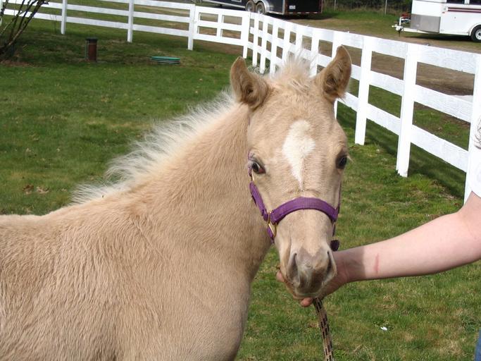 | Keywords: horses palomino colt animal outdoor In this picture the colt, named Bear, is about two months old. He is accompanied by a stablehand holding his lead. CC0 waiver: To the extent possible under law, I waive all copyright and related or neighboring rights to this work. In this picture the colt, named Bear, is about two months old. He is accompanied by a stablehand holding his lead. CC0 waiver: To the extent possible under law, I waive all copyright and related or neighboring rights to this work. |