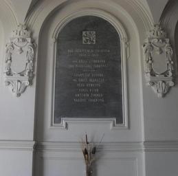 Keywords: Památník obětí 2. světové v budově Teplického Gymnázia A.JPG cs Památník obětem druhé světové ve vstupní hale Teplického gymnázia own PodLampou 2013 Cc-zero Gymnázium Teplice Plaques in Teplice