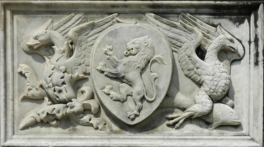 Keywords: Panel Fonte Gaia Siena n4.jpg A lion symbol of the city of Siena Panel of the Fonte Gaia Fountain of Joy piazza del Campo Siena The original was the work of Jacopo della Quercia ca 1367 “1438 Badly deteriorated by long exposure to the elements the fountain was entirely replaced in 1868 by a copy made by neo-Renaissance sculptor Tito Sarrocchi 1824 “1900 Lion symbolisant la ville de Sienne Panneau de la Fonte Gaia Fontaine de la joie sur la piazza del Campo de Sienne Très abĂ®mĂ©e par sa longue exposition aux Ă©lĂ©ments la fontaine a Ă©tĂ© remplacĂ©e dans son intĂ©gralitĂ© en 1868 par une copie du sculpteur puriste Tito Sarrocchi 1824-1900 own Jastrow 2005 Public Domain Fonte Gaia Siena Reliefs of coats of arms in Siena Lions rampant in heraldry Coats of arms of Siena Tito Sarrocchi |