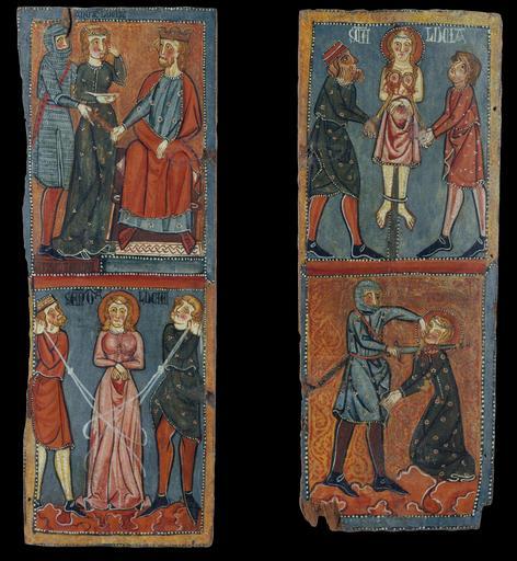 | Keywords: Panels with scenes of the Martyrdom of Saint Lucy - Google Art Project.jpg ~ 1300 466155 Unknown /collection/museu-nacional-dart-de-catalunya/artwork/panels-with-scenes-of-the-martyrdom-of-saint-lucy-unknown/574557/ author /collection/museu-nacional-dart-de-catalunya/ Museu Nacional d'Art de Catalunya - MNAC Barcelona 497131 http //www mnac cat/ 12/28/2011 4 41 56 PM /collection/museu-nacional-dart-de-catalunya/artwork/panels-with-scenes-of-the-martyrdom-of-saint-lucy-unknown/574557/ 1300 Religion Tempera on wood 574557 True 1300 Around 1300 /collection/museu-nacional-dart-de-catalunya/level/ground-floor/2552108/ Ground floor left panel 68 3 x 25 3 x 1 cm; 66 x 25 8 x 2 cm right panel 3/24/2012 5 08 24 AM 035703-CJT http //art mnac cat/fitxatecnica html;jsessionid inventoryNumber 035703-CJT lang en Museu Nacional d'Art de Catalunya Painting 1300 1310 Mur Guàrdia de Noguera Provenance Around 1300 False 0 921875 Group /collection/museu-nacional-dart-de-catalunya/level/ground-floor/2552108/room-19/598331/ Room 19 panels-with-scenes-of-the-martyrdom-of-saint-lucy-unknown Panels with scenes of the Martyrdom of Saint Lucy p Permanent loan from the former Bosch i Catarineu Collection 1934; donated by Julio Muñoz Ramonet 1950 035703-CJT Tempera on wood Religion special url_id zAEN45wDqo9giw PD-old-100 Gothic paintings in the Museu Nacional d'Art de Catalunya Google Art Project works by unknown artist |