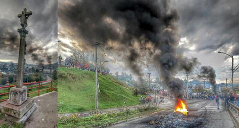 MAKE A MEME View Large Image nocopyright gratis hdr castro chiloé pescadores protesta quema neumáticos equidad pobladores bono jesús cristo cruz estatua chilotes chiloe chile outdoor Toma - Bloqueo, de carretera en sector de Punta Diamante en Castro - Chiloé. ...