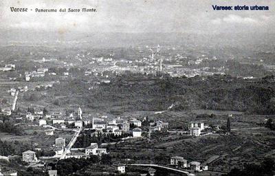 Keywords: Panorama ripreso dal Sacro Monte. In primo piano l'abitato di Sant' Ambrogio Olona, a deestra si intravede tra fitti campi coltivati il rettifilo di viale Aguggiari. Dietro il selvoso colle Miogni si intravede il campanile di San Vittore. varese sambrogioolona |