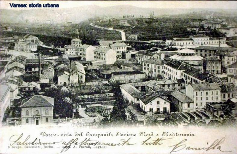 | Keywords: In primo piano via Cavour con ampie aree non urbanizzate, anche via Morosini è solo parzialmente costruita. Dietro il terrapieno dei binari della ferrovia per Porto Ceresio, via Maspero si inerpica per il colle di Giubiano privo di costruzioni e coperto di ronchi, sulla cima il cimitero monumentale dove spiccano i cipressi e la ciminiera del crematorio. varese | ||||