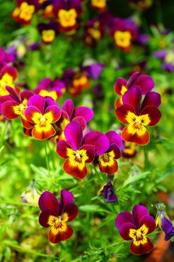 Keywords: pansy flower blossom bloom yellow violet viola violaceae colorful color flora plant day and night flower day and night blümle