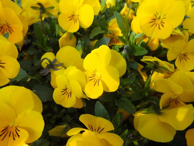 Keywords: pansy flowers spring close blossom bloom yellow