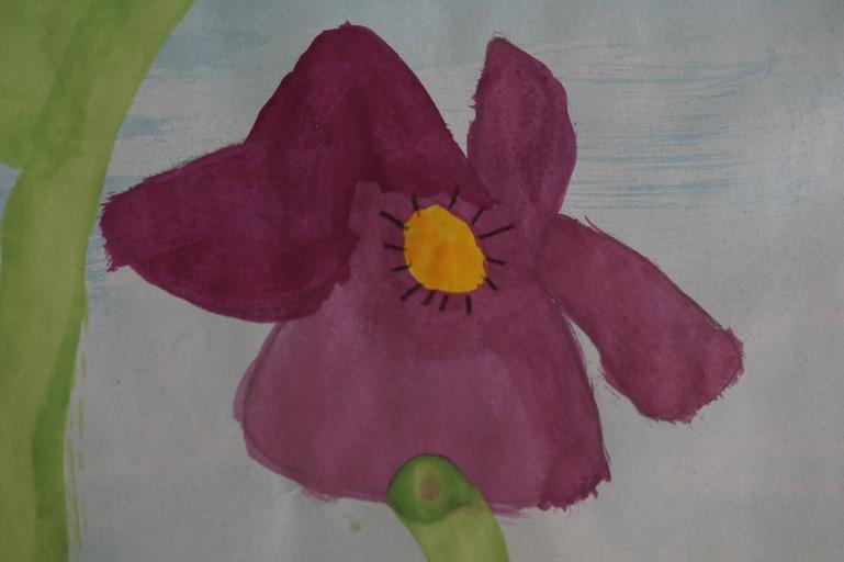 Keywords: pansy painted school elementary school children students art class art purple watercolor
