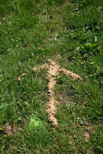 Keywords: paper chase play nature arrow grass meadow out outdoor play outside characters symbol direction ground game note