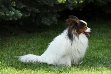Keywords: papillon pure-breed dog breed doggy animal the silhouette fur a friend of man green tail coat