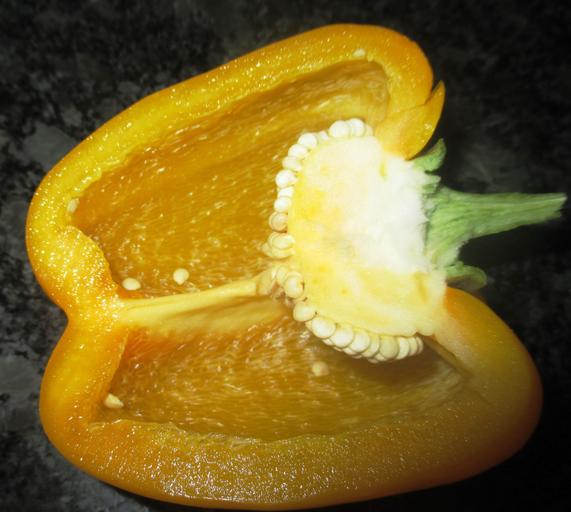 Keywords: paprika yellow vegetables eat vitamins healthy sliced cross section