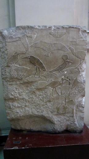 Keywords: Papyrus thicket relief.JPG en Relief from the pyramid temple of Userkaf now in the Egyptian Museum of Antiquities in Cairo The scene includes a butterfly and a variety of birds a hovering pied kingfisher a green kingfisher facing a grey heron a hoopoe facing a purple water-hen a sacred ibis ¦ and in the lowest part the head of a bittern The Egyptian Museum in Cairo by Abeer el-Shahawy 2005 The relief would have been part of a hunting scene symbolizing the king's role as the establisher of order The life in the papyrus thicket may also allude to the role of the sun god Ra in creating life on earth Fifth Dynasty 25th century BC 2015-12-31 02 58 26 own A Parrot other versions 30 02 51 3 N 31 14 1 2 E CC-0 Userkaf Uploaded with UploadWizard |
