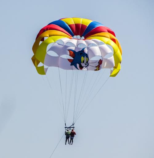 Keywords: parachute paragliding cat and mouse balloon sky sport activity vacation recreation summer leisure action tom jerry