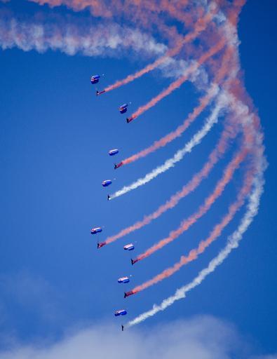 Keywords: parachuting parachute skydiving air show paratrooper sky diving extreme sport jump parachutist skydiver formation