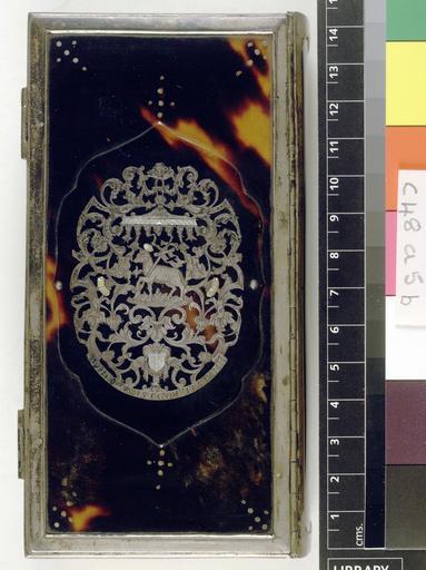 Keywords: Paradiessgartlein, voller Christlichen Tugenden. - Upper cover (c48a5).jpg Style Centrepiece Mottoes Religious miscellaneous; Caption Upper cover; Colour Brown; Edge Unspecified exhibition history Decorative Technique Unspecified; Cover Material Tortoise shell Tortoiseshell binding silver border engraved silver centrepieces with mother of pearl tortoiseshell and silver clasps hinges on the lower cover Centrepiece engraved with the letters; STHE DAS IST GOTTESLAM object history Text 1722; Ulm; Unspecified object type Cc-zero place of creation Binding Germany place of discovery Unspecified British Library image http //www bl uk/catalogues/bookbindings/LargeImage aspx RecordId 020-000008536 ImageId ImageId 43873 Copyright BL Paradiessgartlein voller Christlichen Tugenden Uploaded with GWToolset Paradiessgartlein voller Christlichen Tugenden - Upper cover c48a5 http //www webarchive org uk/bldatasets/bindings/9164_4 jpg Bookbinding 18th-century bookbinding British Library Bookbindings |