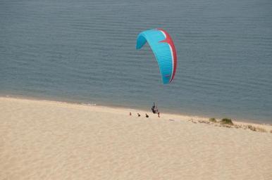 Keywords: paragliding mountain paraglider fly freedom sky sport grande dune you pilat sand dune france ocean atlantic coast wide sand dune du pilat atlantic sea dune you pilat dune pyla you arcachon kitesurfing