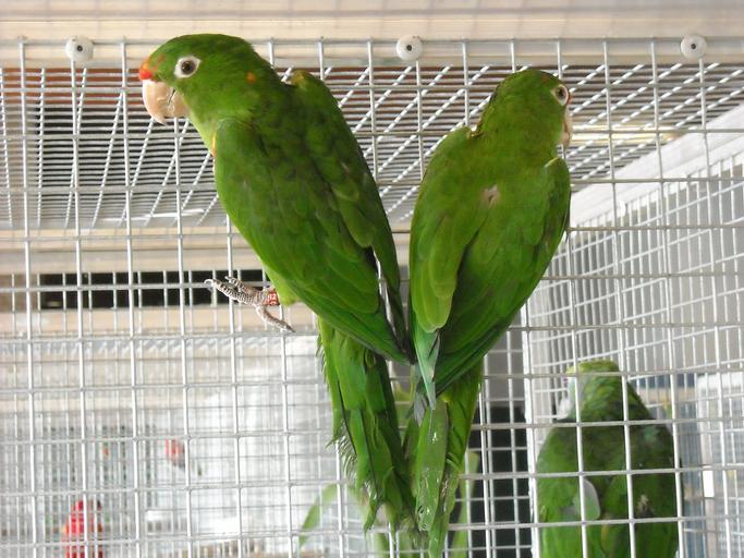 Keywords: parakeets small parrots birds cage pets green torque animals
