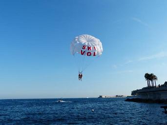 Keywords: parasailing controllable parachuting high parachute fly bird's eye view paragliding hang gliding sky blue paraglider screen sport hobby airy personal human water sports pair
