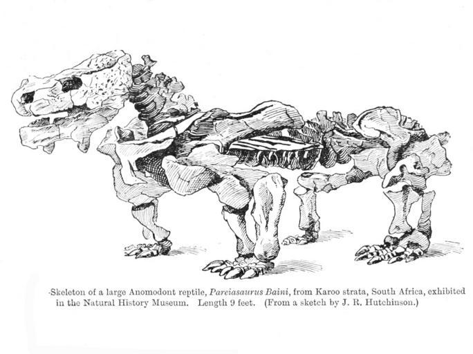 Keywords: Pareiasaurus Smit.jpg Pareiasaurus http //archive org/stream/extinctmonstersc00hutc page/115/mode/1up Rev H N Hutchinson 1910 Extinct monsters and creatures of other days Chapman Hall London 1910 creator Joseph Smit pd-old-70 Bradysaurus