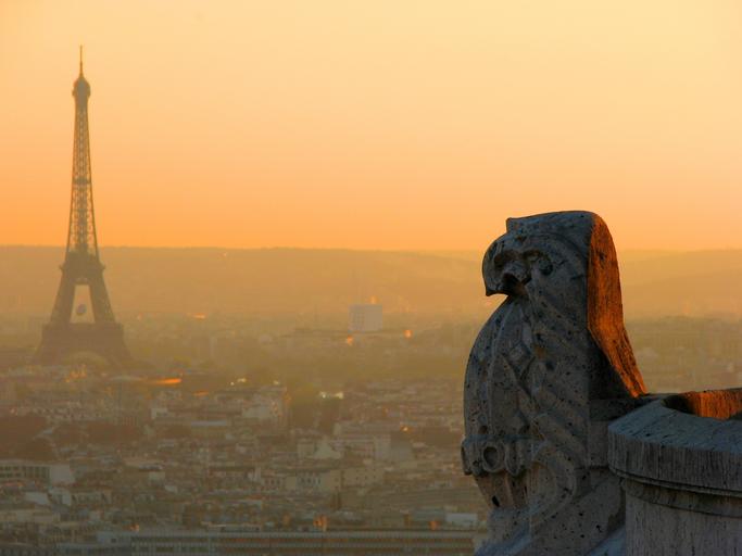 Keywords: paris eiffel tower city sunset panorama of the city view sculpture stone statue bird thoughtfulness france
