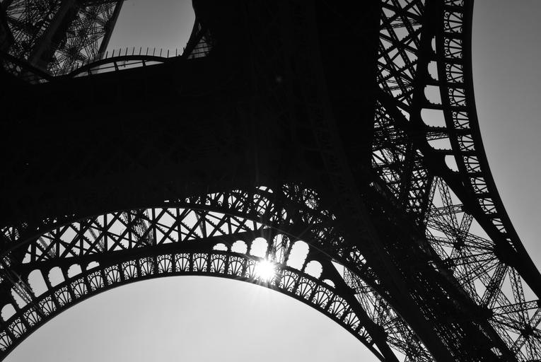 Keywords: paris france eiffel tower black and white silhouette against the light