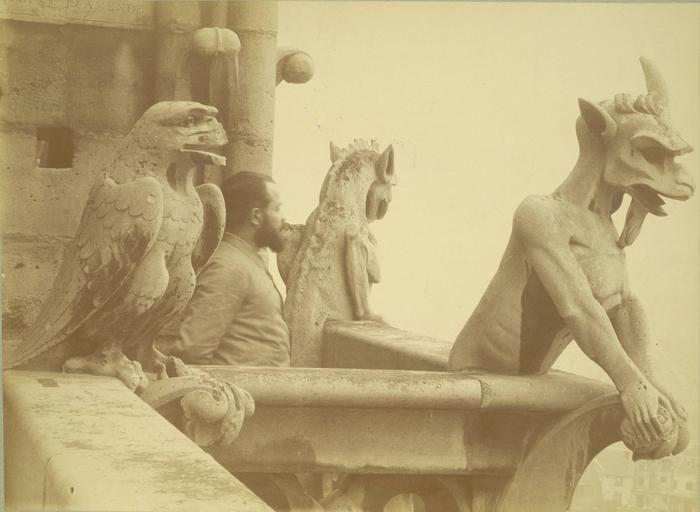 Keywords: Paris. Notre Dame Cathedral Tower. Chimeras and Man.jpg <b>Collection</b> A D White Architectural Photographs Cornell University Library Accession Number 15/5/3090 00628 <b>Title</b> Paris Notre Dame Cathedral Tower Chimeras and Man Sculpture Date 1845-1868 Photograph date ca 1865-ca 1886 <b>Location</b> Europe France; Paris <b>Materials</b> albumen print Image 10 8268 x 14 8031 in ; 27 5 x 37 6 cm <b>Style</b> Gothic Revival <b>Provenance</b> Gift of Andrew Dickson White <b>Persistent URI</b> <a href http //hdl handle net/1813 001/5sr1 rel nofollow >http //hdl handle net/1813 001/5sr1</a> There are no known copyright restrictions on this image The digital file is owned by the Cornell University Library which is making it freely available with the request that when possible the Library be credited as its source We had some help with the geocoding from <a href http //developer yahoo com/ rel nofollow >Web Services by Yahoo </a> Flickr http //flickr com/photos/30515687 N05/3486749414 Paris Notre Dame Cathedral Tower Chimeras and Man 1865-01-01 00 00 00 http //www flickr com/people/30515687 N05 Cornell University Library User Flickr upload bot/upload-pd 07 40 23 October 2012 UTC Paris 16 PD-Old Chimeras of Notre-Dame de Paris 1886 in Paris |