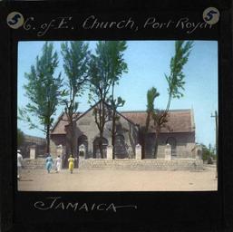 | Keywords: Parish Church, Port Royal, Jamaica (imp-cswc-GB-237-CSWC47-LS12-005).jpg en <br> Parish Church Port Royal Jamaica Photograph of the Church of England Parish Church Port Royal The church is a stone built building with a red tiled roof A number of parishioners can be seen approaching the building The church was rebuilt 1725-1726 ; Memorial tablets cover the interior walls of the church commemorating men lost in gales killed in action or by the sinking of their ships but more numerous than all the others put together are those commemorating those struck down by yellow fever Photographer Unknown Filename imp-cswc-GB-237-CSWC47-LS12-005 tif Coverage date after 1900 Part of collection International Mission Photography Archive ca 1860-ca 1960 Type images Part of subcollection Photographs from the Centre for the Study of World Christianity University of Edinburgh U K ca 1900-ca 1940s Repository name Centre for the Study of World Christianity Archival file impaunpub_Volume7/1337 url Geographic subject city or populated place Port Royal Repository address The University of Edinburgh School of Divinity New College Mound Place Edinburgh EH1 2LX United Kingdom Geographic subject country Jamaica Format aacr2 1 lantern slide 8 x 8 cm Geographic subject continent North and Central America Rights Contact the repository for details Part of series The Jamaican Church in the Bush LS12 Repository email divinity-CSWC ed ac uk Subject lcsh Keyword Church buildings; Religion Date created after 1900 Publisher of the digital version University of Southern California Libraries Subject aat genre exterior views Format aat lantern slides Legacy record ID impa-m68255 Access conditions http //www ed ac uk/schools-departments/divinity/research/centres/world-christianity/collections-resources File GB 237 CSWC47/LS12/5 after 1900 author http //digitallibrary usc edu/cdm/ref/collection/p15799coll123/id/64458 PD-old-70-1923 Magic lantern images Images from USC Digital Library uploaded by Fæ International Mission Photography Archive ca 1860-ca 1960 Port Royal |