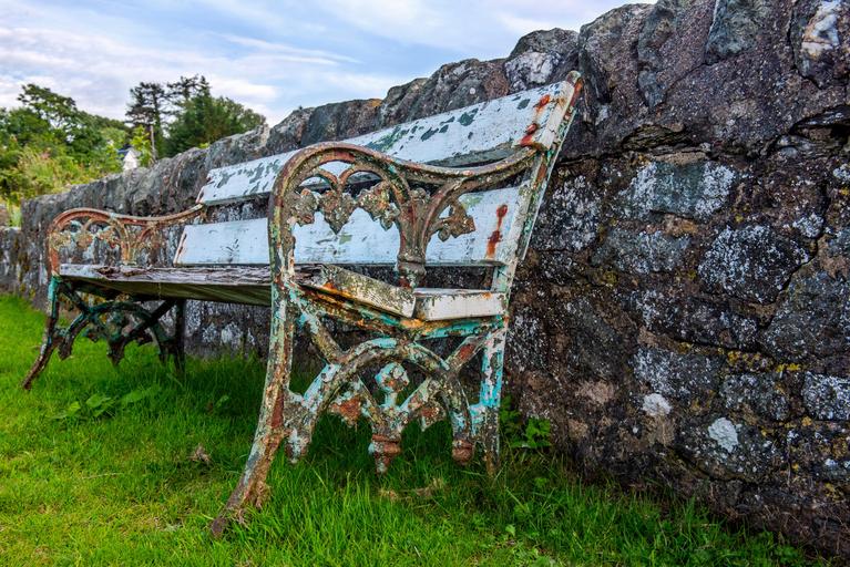 Keywords: park bench old grass rusty white stand still sit chair wood in the free rush furniture iron metallic stone wall